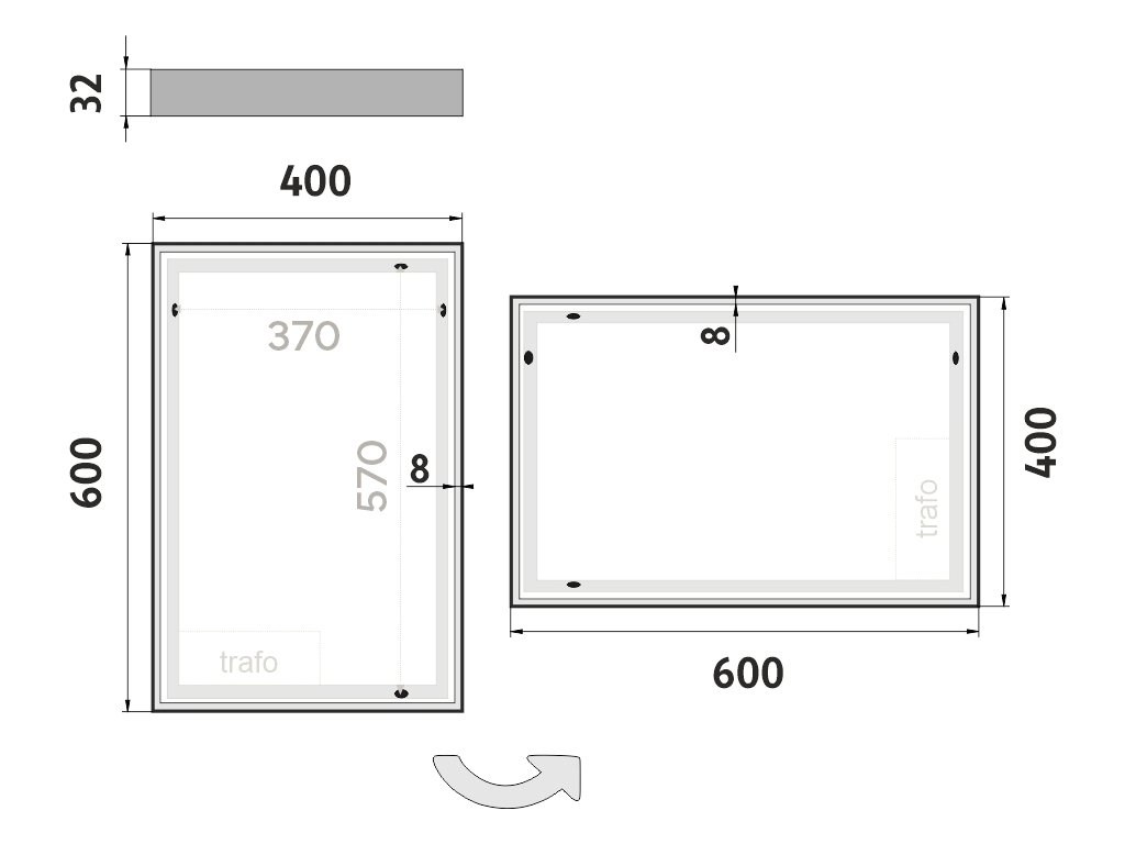 Obdélníkové zrcadlo s rámem s ostrými rohy a celoobvodovým svícením pro dokonalé a rovnoměrné osvětlení. Zrcadlo bez integrovaného vypínače je určené k připojení a ovládání nástěnným vypínačem. Barva světla zrcadla je pevně nastavena. Pro dosažení kvalitního a rovnoměrného svícení je použit akrylový difuzor, který zajišťuje měkký a harmonický rozptyl světla bez viditelných bodových zdrojů. LED diody jsou vkusně integrovány do rámu spolu s difuzorem, což přispívá k elegantnímu a čistému vzhledu zrcadla. Zrcadlo využívá nejmodernější LED čipy SMD 2835, které jsou známé svou vysokou svítivostí, energetickou úsporností a dlouhou životností. Hustota čipů 96/m, životnost 50 000 hodin. Parametry LED: Survival Factor = 1, Lumen Maintenance Factor 0,99 a Flicker Metric 0,02, pak zajišťují stabilní, bezblikavé a dlouhodobě konzistentní osvětlení. Nosná konstrukce zrcadla je vyrobena z masivního hliníkového rámu o rozměrech 32x19 mm, který zajišťuje vysokou pevnost a stabilitu. Stejně tak je z hliníku vyroben kryt zdroje a všech elektronických součástek. Sklo o tloušťce 5 mm je opatřeno bezpečnostní fólií, která chrání před zraněním v případě rozbití. Zrcadlo navíc disponuje stupněm ochrany proti vlhkosti IP44, což zaručuje spolehlivost i v prostředí s vyšší vlhkostí. Zrcadlo splňuje všechny české normy a je opatřeno českým certifikátem CE, který zaručuje jeho kvalitu a bezpečnost. Nabízí flexibilní možnosti upevnění, a to jak vertikálně, tak horizontálně, a je dodáváno včetně kompletní montážní sady a kabelové spojky s ochranou IP44. Pro zajištění bezpečné přepravy je zrcadlo pečlivě zabaleno a připraveno k expedici prostřednictvím kurýrní služby. Ovládání: Bez integrovaného spínače Ovládání nástěnným vypínačem Nastavení barvy světla: Barva světla pevně nastavena Barva světla: 4000 K (neutrální bílé světlo, ideální pro přesné a přirozené osvětlení) Funkce stmívání: Není instalováno Paměť nastavení: Není instalováno Konstrukce svícení: K rovnoměrnému rozptylu světla zrcadlo disponuje akrylovým matovaným difuzorem Integrace LED: Led diody jsou zabudované v rámu LED čip: Nejmodernější LED čipy SMD 2835 LED pásek - hustota čipů: 96/m Životnost LED čipů: Až 50 000 hodin Kvalita osvětlení LED: Survival Factor = 1; Lumen maintenance factor = 0,99; Flicker metric = 0,02 Materiál: Zrcadlové sklo, hliník Materiál konstrukce: Rám zrcadla a kryt zdroje jsou vyrobeny z hliníku Tloušťka skla: 5 mm Ochrana při rozbití: Bezpečnostní fólie Stupeň ochrany: IP 44 Certifikace: Český certifikát CE Umístění: Montáž na stěnu Možnost upevnění vertikálně i horizontálně Montážní příslušenství: Součástí balení je montážní sada a kabelová spojka s ochranou IP 44 Obal: Zabalené pro přepravu kurýrní službou Napětí: Vstupní napětí 220-240 V Výstupní napětí 12 V Příkon: 29 W, světelný tok: 2088 lm Rozměr: v: 600 mm š: 35 mm d: 400 mm Hmotnost: 4,46 kg
