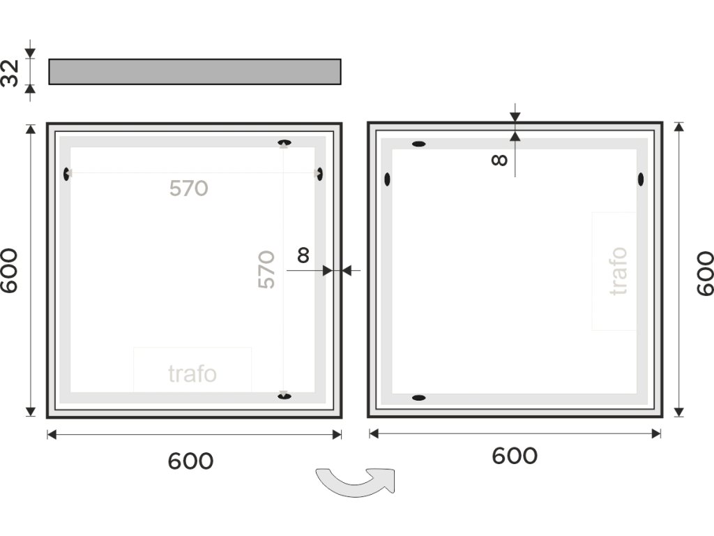 Čtvercové zrcadlo s rámem s ostrými rohy a celoobvodovým svícením pro dokonalé a rovnoměrné osvětlení. Zrcadlo bez integrovaného vypínače je určené k připojení a ovládání nástěnným vypínačem. Barva světla zrcadla je pevně nastavena. Pro dosažení kvalitního a rovnoměrného svícení je použit akrylový difuzor, který zajišťuje měkký a harmonický rozptyl světla bez viditelných bodových zdrojů. LED diody jsou vkusně integrovány do rámu spolu s difuzorem, což přispívá k elegantnímu a čistému vzhledu zrcadla. Zrcadlo využívá nejmodernější LED čipy SMD 2835, které jsou známé svou vysokou svítivostí, energetickou úsporností a dlouhou životností. Hustota čipů 96/m, životnost 50 000 hodin. Parametry LED: Survival Factor = 1, Lumen Maintenance Factor 0,99 a Flicker Metric 0,02, pak zajišťují stabilní, bezblikavé a dlouhodobě konzistentní osvětlení. Nosná konstrukce zrcadla je vyrobena z masivního hliníkového rámu o rozměrech 32x19 mm, který zajišťuje vysokou pevnost a stabilitu. Stejně tak je z hliníku vyroben kryt zdroje a všech elektronických součástek. Sklo o tloušťce 5 mm je opatřeno bezpečnostní fólií, která chrání před zraněním v případě rozbití. Zrcadlo navíc disponuje stupněm ochrany proti vlhkosti IP44, což zaručuje spolehlivost i v prostředí s vyšší vlhkostí. Zrcadlo splňuje všechny české normy a je opatřeno českým certifikátem CE, který zaručuje jeho kvalitu a bezpečnost. Nabízí flexibilní možnosti upevnění, a to jak vertikálně, tak horizontálně, a je dodáváno včetně kompletní montážní sady a kabelové spojky s ochranou IP44. Pro zajištění bezpečné přepravy je zrcadlo pečlivě zabaleno a připraveno k expedici prostřednictvím kurýrní služby. Ovládání: Bez integrovaného spínače Ovládání nástěnným vypínačem Nastavení barvy světla: Barva světla pevně nastavena Barva světla: 4000 K (neutrální bílé světlo, ideální pro přesné a přirozené osvětlení) Funkce stmívání: Není instalováno Paměť nastavení: Není instalováno Konstrukce svícení: K rovnoměrnému rozptylu světla zrcadlo disponuje akrylovým matovaným difuzorem Integrace LED: Led diody jsou zabudované v rámu LED čip: Nejmodernější LED čipy SMD 2835 LED pásek - hustota čipů: 96/m Životnost LED čipů: Až 50 000 hodin Kvalita osvětlení LED: Survival Factor = 1; Lumen maintenance factor = 0,99; Flicker metric = 0,02 Materiál: Zrcadlové sklo, hliník Materiál konstrukce: Rám zrcadla a kryt zdroje jsou vyrobeny z hliníku Tloušťka skla: 5 mm Ochrana při rozbití: Bezpečnostní fólie Stupeň ochrany: IP 44 Certifikace: Český certifikát CE Umístění: Montáž na stěnu Možnost upevnění vertikálně i horizontálně Montážní příslušenství: Součástí balení je montážní sada a kabelová spojka s ochranou IP 44 Obal: Zabalené pro přepravu kurýrní službou Napětí: Vstupní napětí 220-240 V Výstupní napětí 12 V Příkon: 30 W, světelný tok: 2160 lm Rozměr: v: 600 mm š: 32 mm d: 600 mm Hmotnost: 6 kg