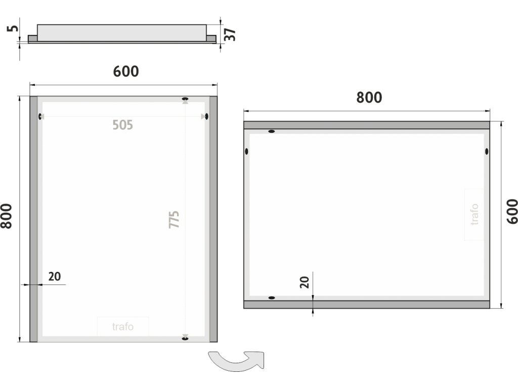 Nimco OBDELNÍKOVÁ - OSTRÉ ROHY LED zrcadlo 600x800 ZP 11002