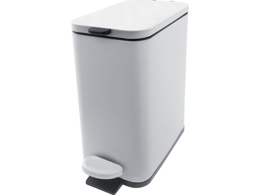 Odpadkový koš do koupelny s nášlapem o objemu 5l bílý mat má oblé hrany, obdélníkový tvar víka a vyjímatelný vnitřní koš. Díky užší čelní a delším bočním stranám je skvělým doplňkem vedle WC, kde je zhoršený přístup. Víko má na čelní straně navíc malý úchyt pro komfortnější otevírání rukou, což se hodí, třeba když zrovna sedíte na WC. Měkké dovírání soft close zajišťuje tiché uzavření koše po uvolnění pedálu nebo víka. Kromě bílé barvy těla a víka koše, je bíle barvený i pedál (barva se neloupe), což přináší čistý design kombinace černé a bílé. Jedná se o vysoce kvalitní a prakticky řešený odpadkový koš do koupelny, či k WC.