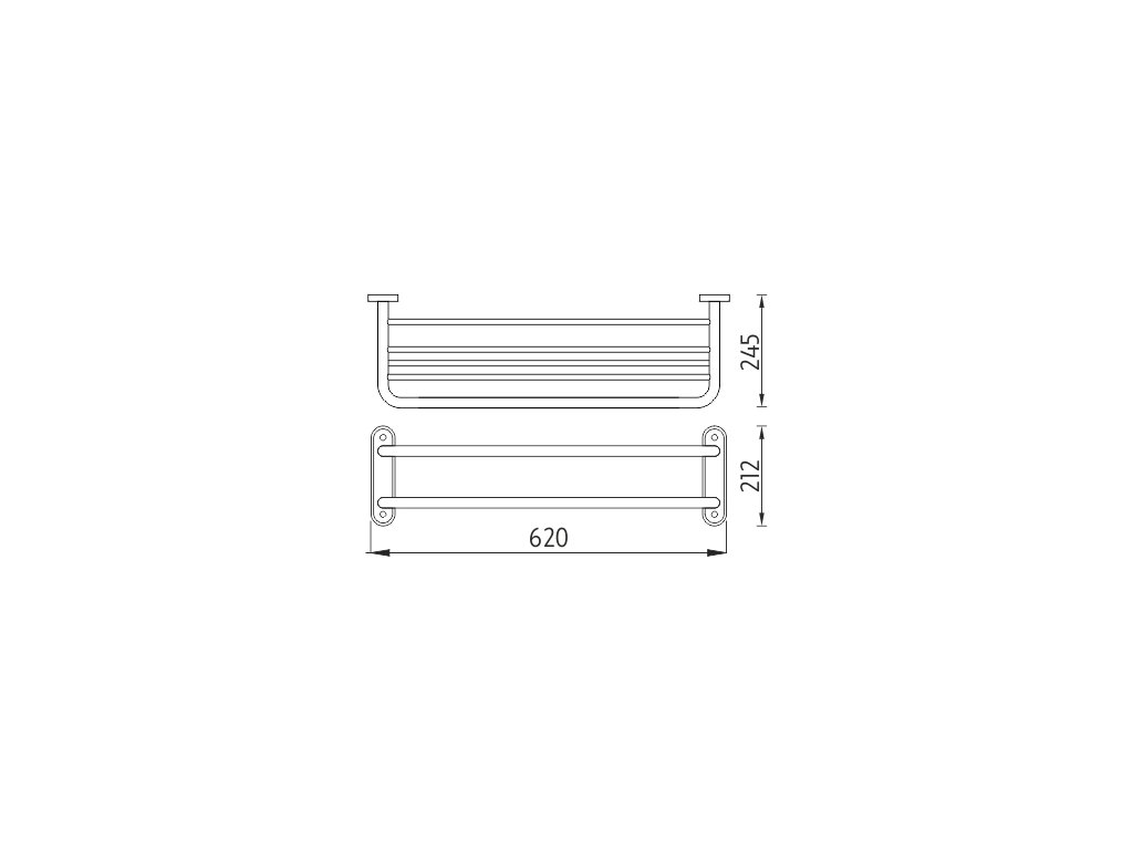 Police a zároveň sušák na ručníky z kovových trubek v úpravě chrom. Poskládané suché ručníky hravě uložíte na polici a zároveň máte k dispozici sušák na vlhký ručník nebo osušku, který je součástí police. Materiál nerez, povrchová úprava leštěný nerez-lesk/chrom, šířka 62 cm. Police na ručníky bude koupelně slušet mnohem více, když zvolíte i další doplňky z nabídky koupelnových a WC doplňků NIMCO.
