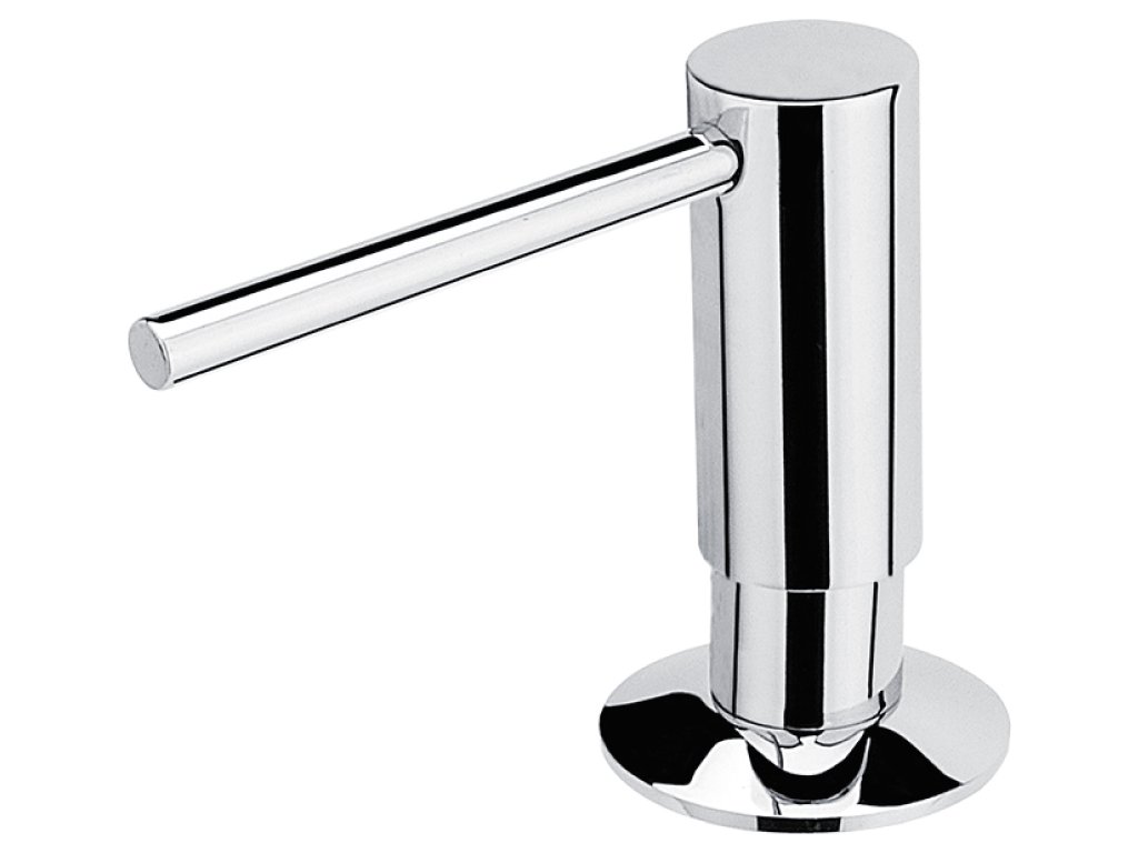 Vestavěný dávkovač na mýdlo, dezinfekční gel, prostředek k mytí nádobí. Hlava pumpy průměr 27 mm. Plnění nádobky shora vyjmutím pumpy.