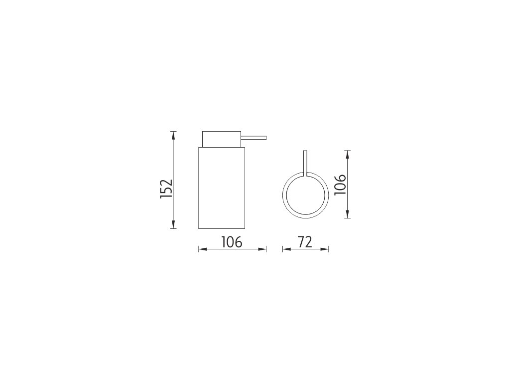 Volně stojící dávkovač tekutého mýdla s chromovanou dávkovací pumpičkou.