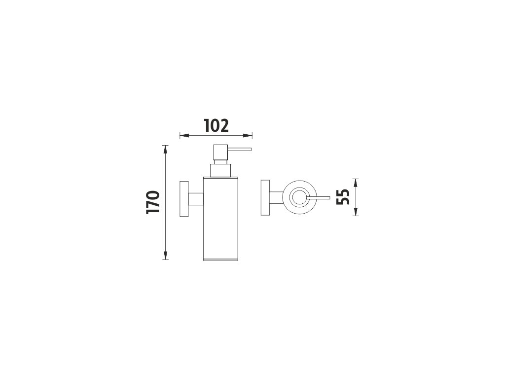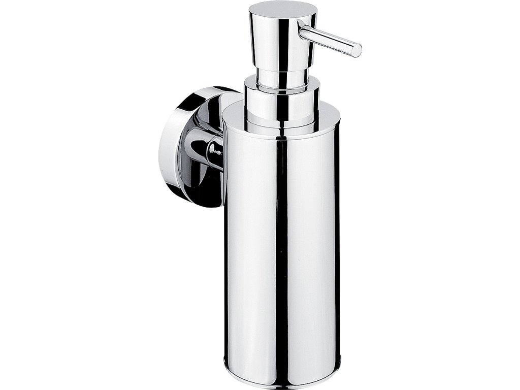 Nástěnný dávkovač na tekuté mýdlo. Kovový tubus. Pumpička mosazná. Objem 150 ml.