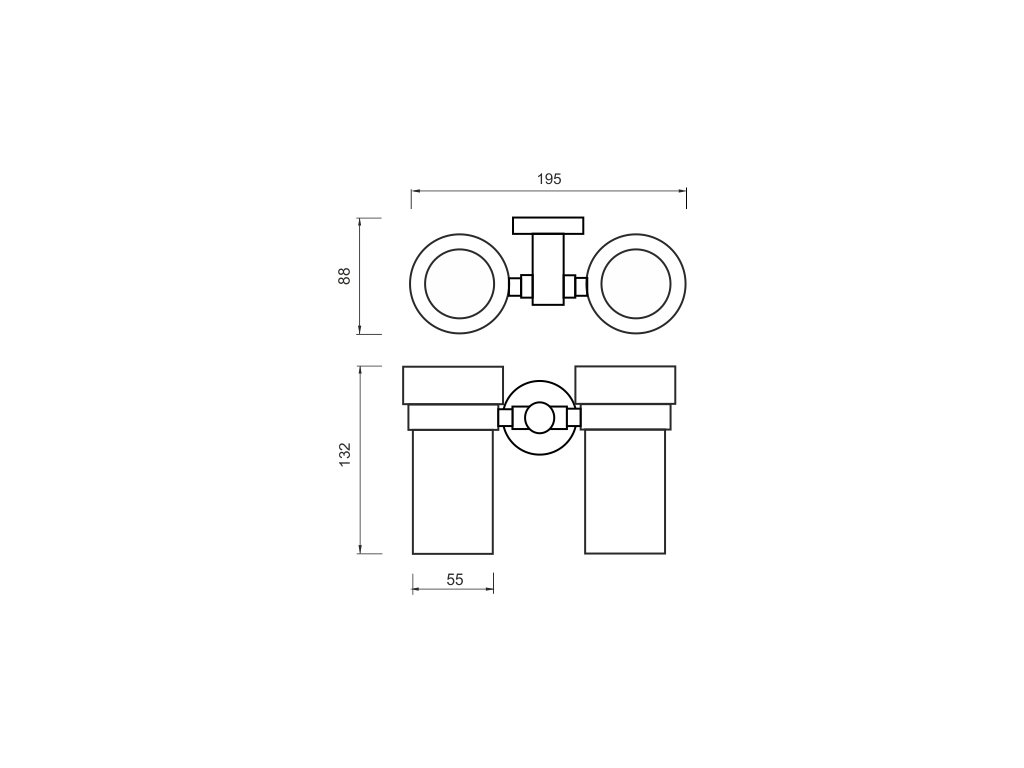 Dvojitý držák sklenek. Nádobky z matného skla.