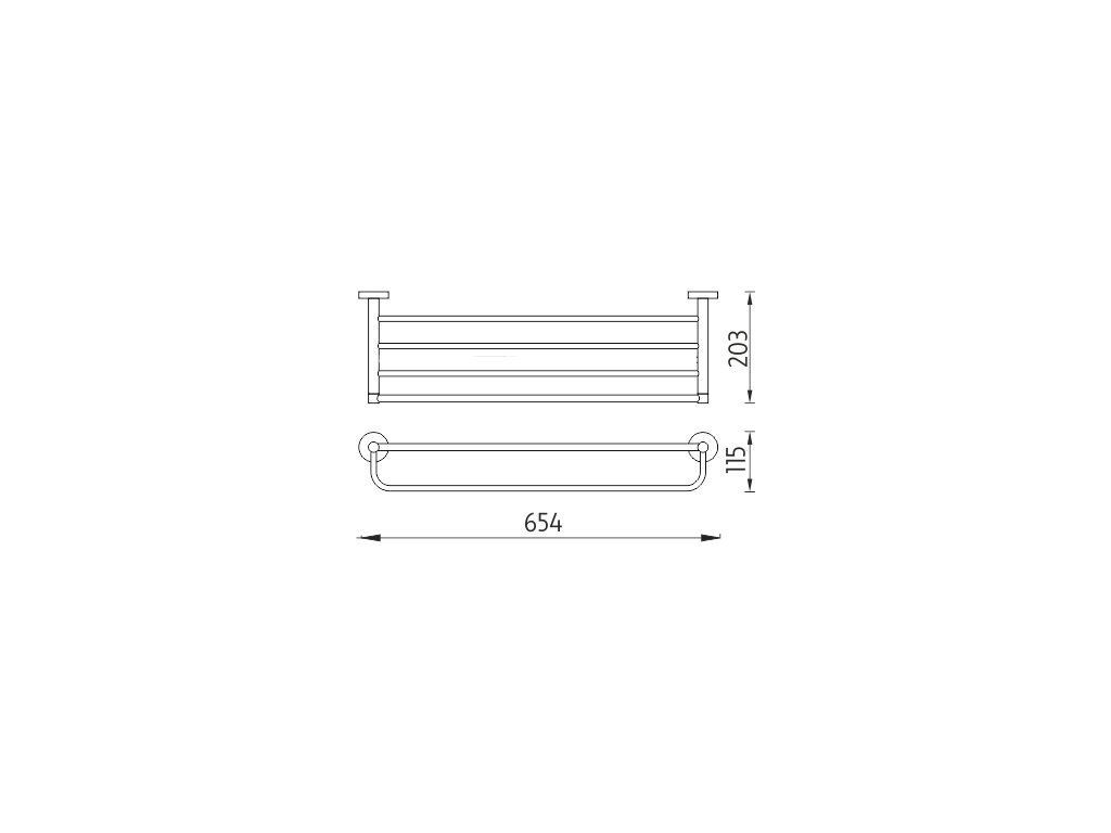 Police na ručníky kombinovaná s madlem pro zavěšení ručníků. Broušená nerez.