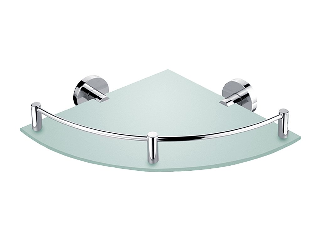 Police rohová s ohrádkou ve skle. Sklo matné. Poloměr skla 25 cm.
