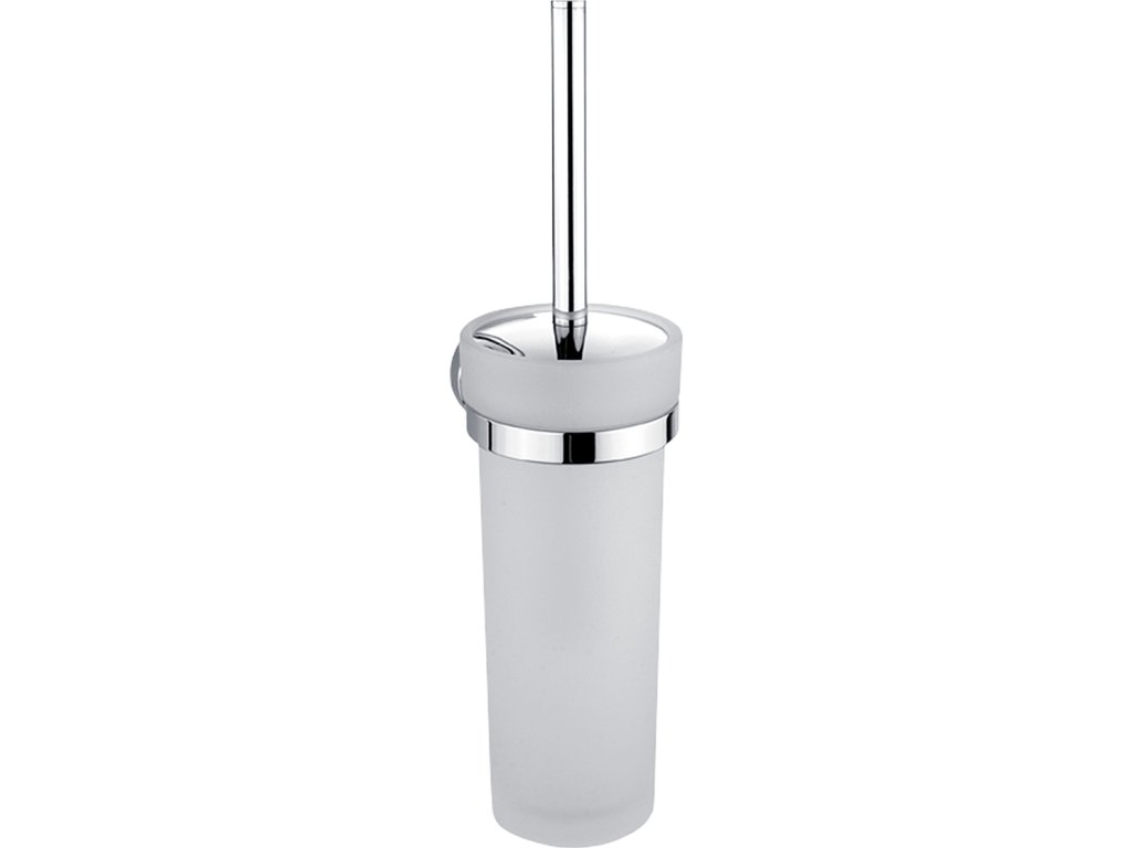 WC štětka s nádobkou z matného skla. Rukojeť kartáče z mosazi s povrch. úpravou chrom.