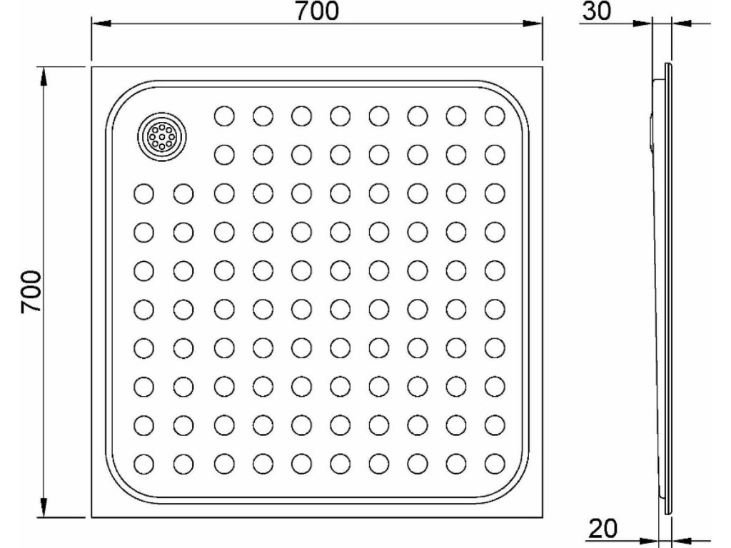 NOFER Nerezová sprchová vanička, čtverec 70x70cm, mat 13052.70.S
