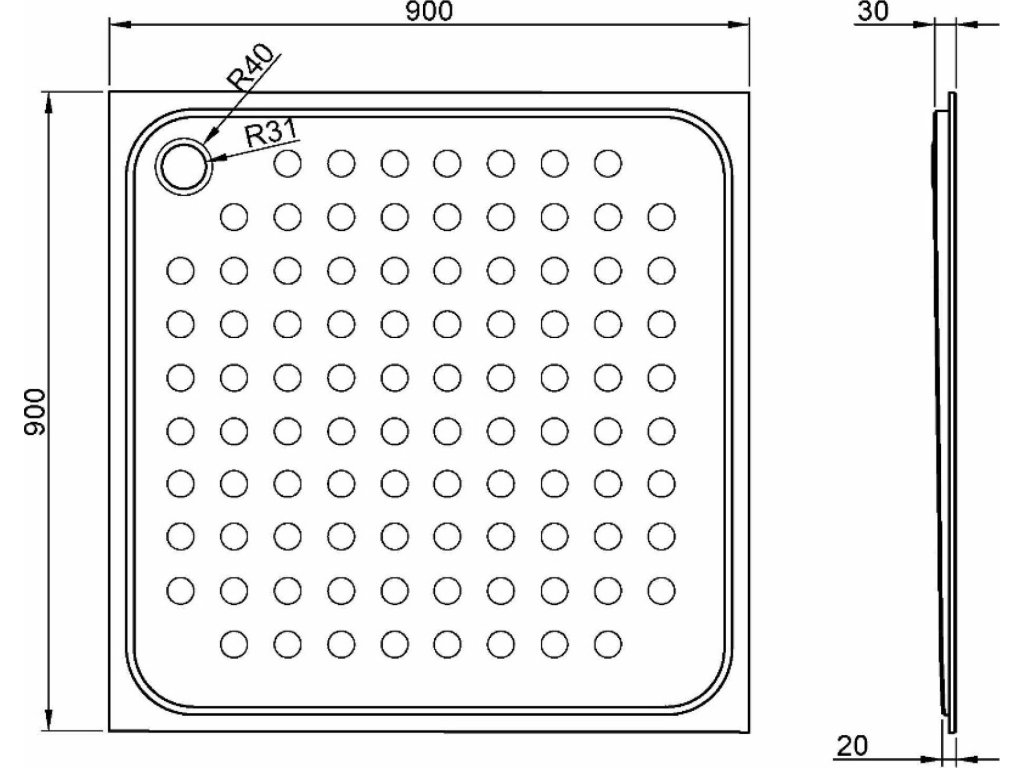 NOFER Nerezová sprchová vanička, čtverec 90x90cm, mat 13052.90.S