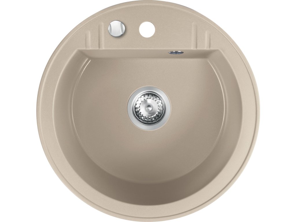 Granitový dřez s přepadem. Dřez má průměr 51 cm a hloubku 17,9 cm. Automatické otevírání a zavírání výpusti knoflíkem. Součástí balení je sifon. Prodloužená záruka 15 let.