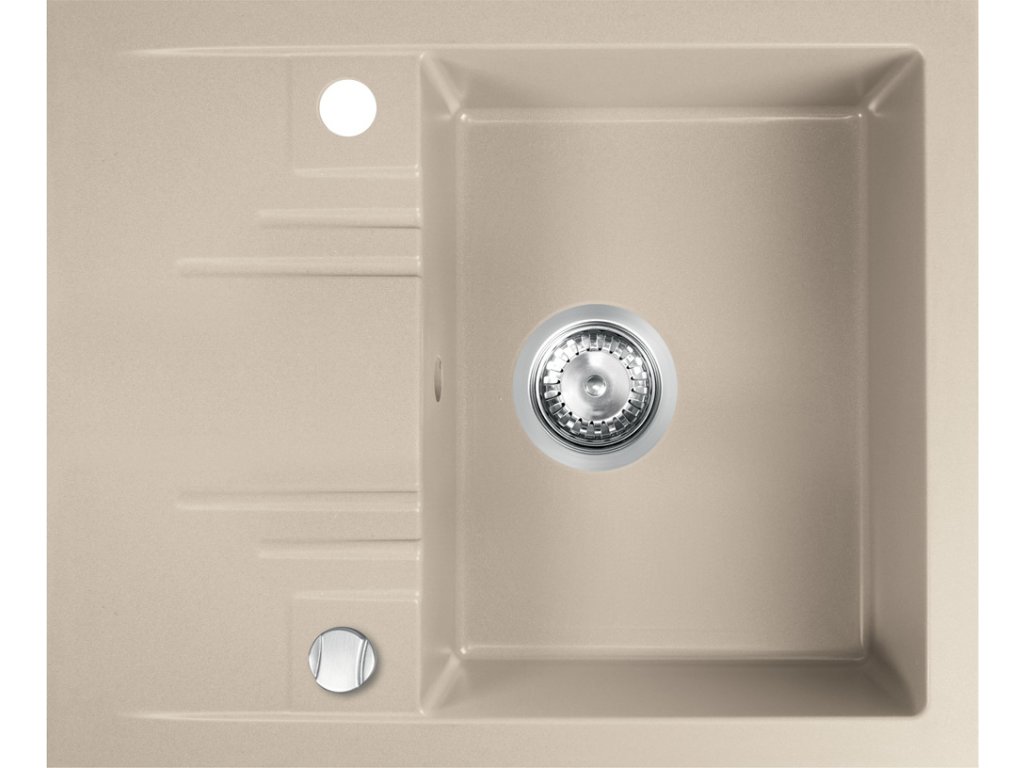 Granitový dřez s přepadem a okapem. Dřez má rozměry 58x48 cm a hloubku 15,7 cm. Automatické otevírání a zavírání výpusti knoflíkem. Součástí balení je sifon. Prodloužená záruka 15 let.