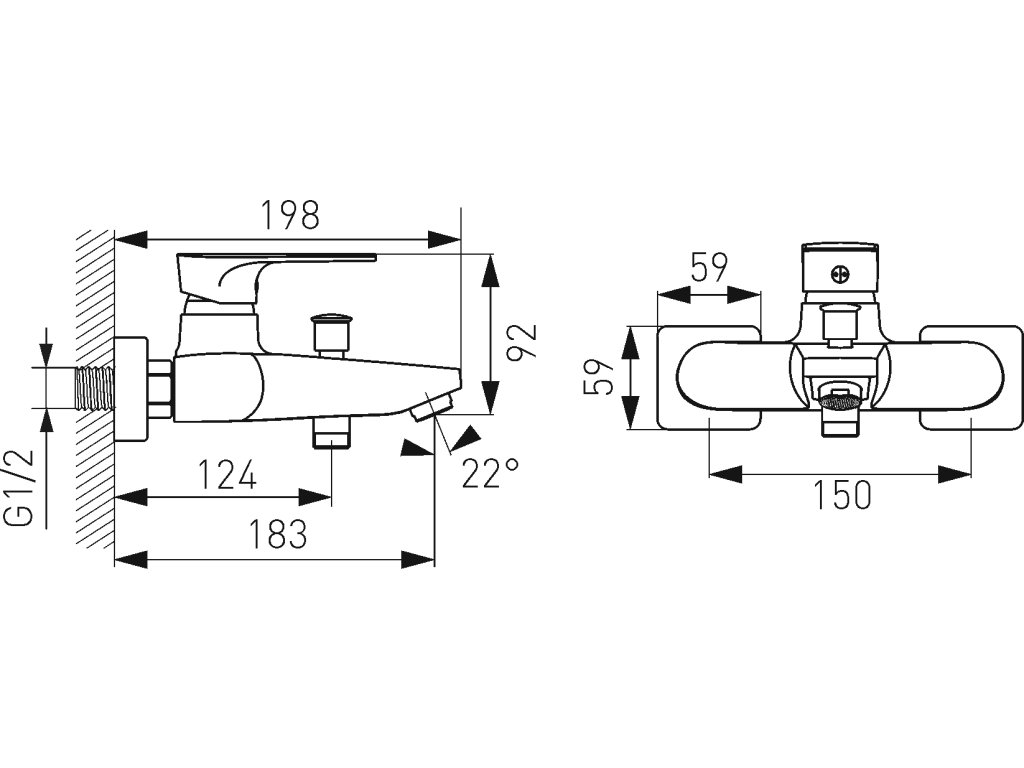Novaservis Nástěnná vanová baterie bez příslušenství ALGEO SQUARE chrom 82020/1,0
