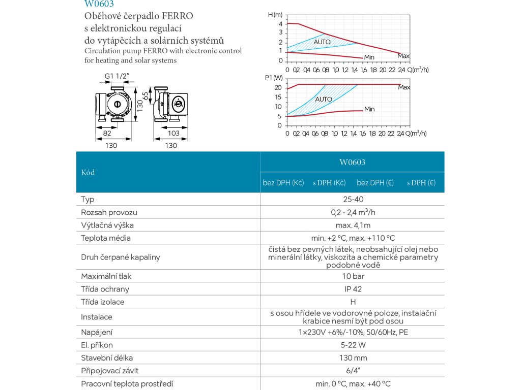 Oběhové elektronické čerpadlo Ferro 25-40/130mm