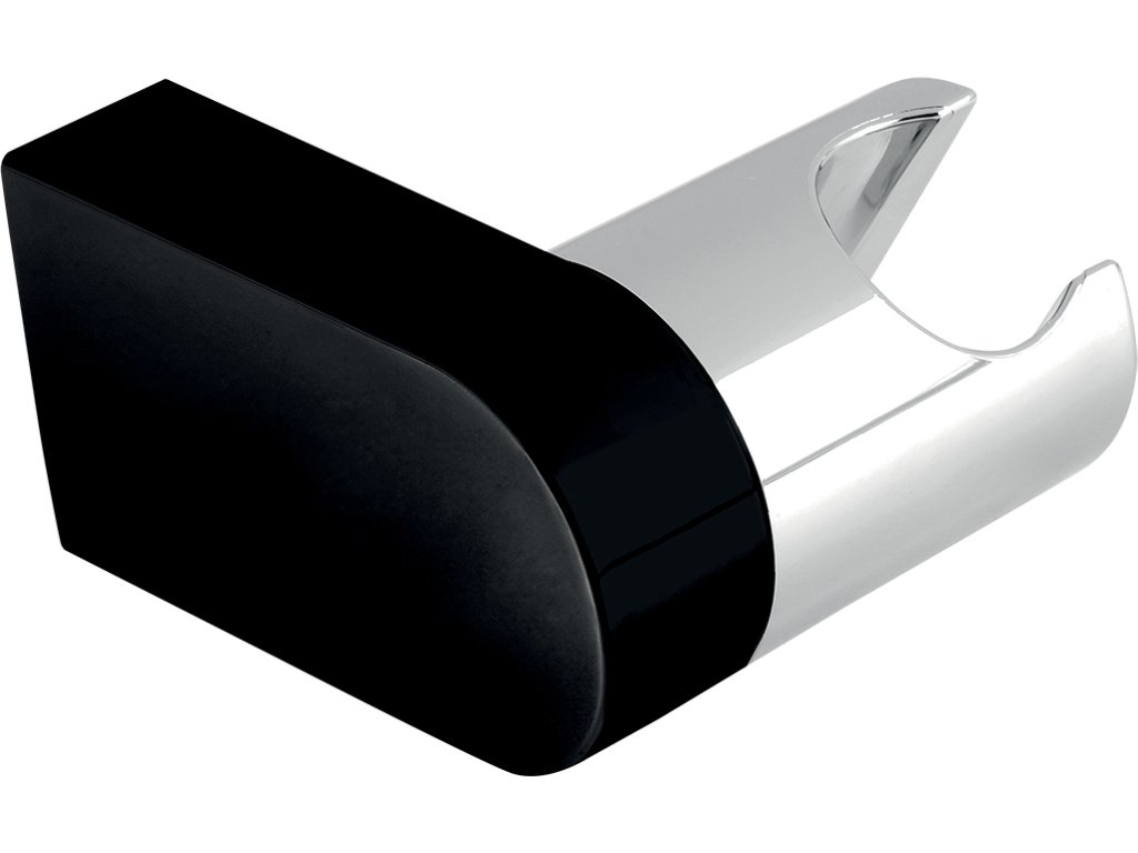 Polohovatelný držák ruční sprchy v černé barvě.