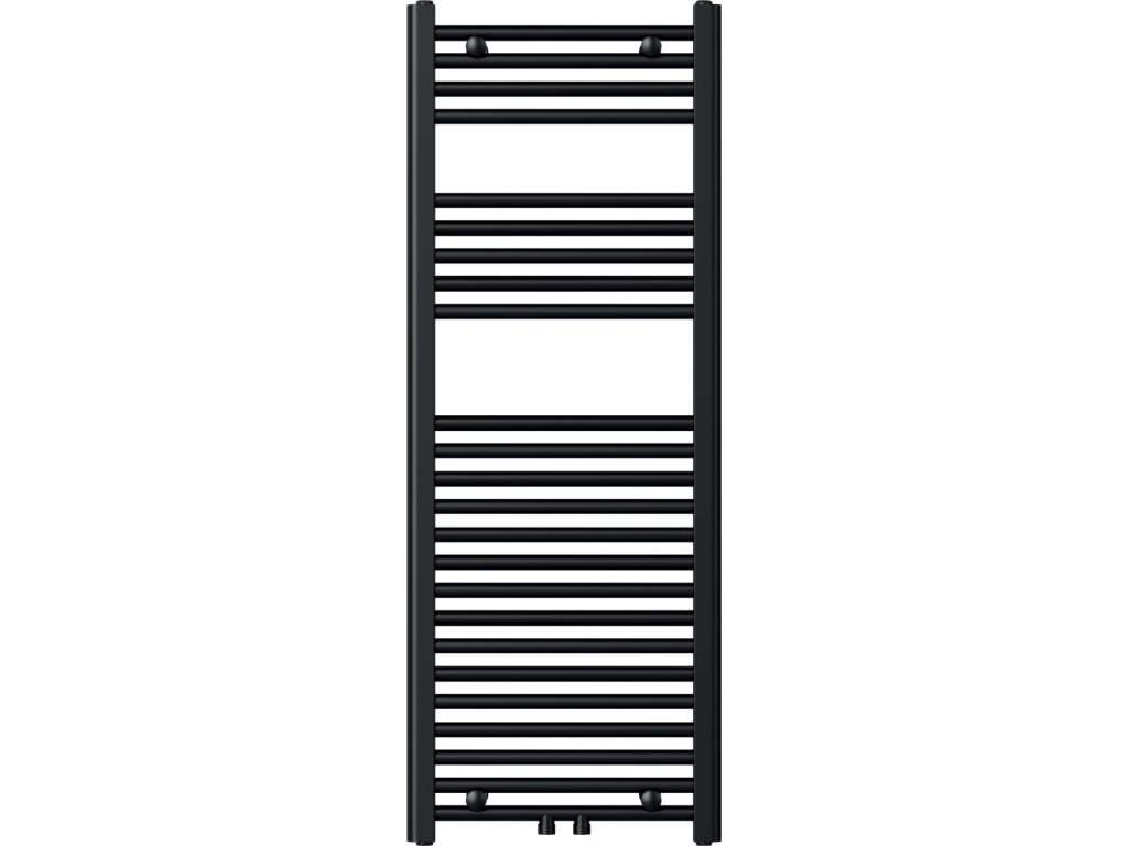 Rovné topidlo se středovým připojením v černé-mat. Rozměry 450 x 1200 mm. Součástí tělesa je zátka, zátka s odvzdušněním a 4ks montážních úchytů. Možnost připojení topné tyče.