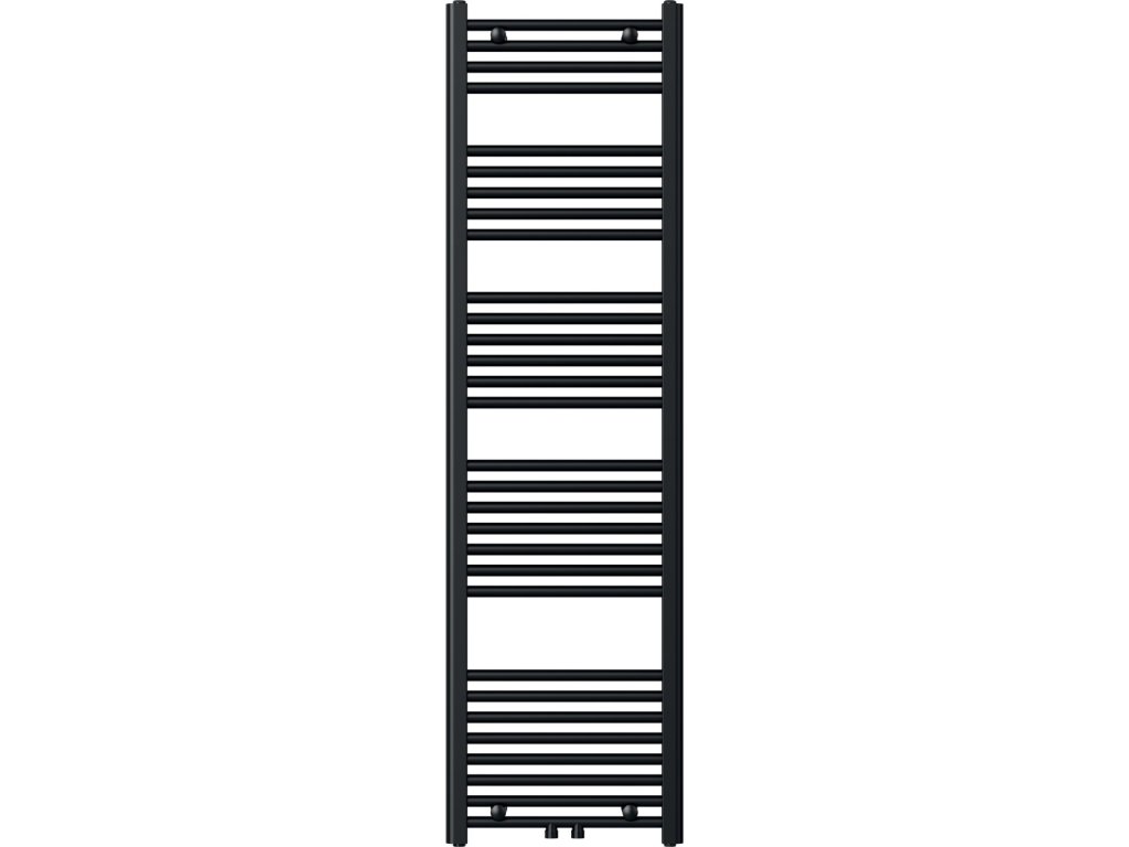 Rovné topidlo se středovým připojením v černé-mat. Rozměry 450 x 1600 mm. Součástí tělesa je zátka, zátka s odvzdušněním a 4ks montážních úchytů. Možnost připojení topné tyče.
