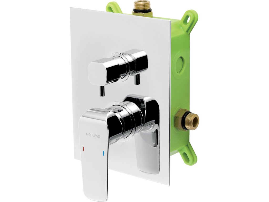 Kvalitní a odolná keramická kartuše 35 mm s prodlouženou zárukou 5 let. Prvotřídní chromové provedení. Vanová a sprchová podomítková baterie s boxem a keramickým přepínačem pro 2 vývody. Box je dodávaný komplet včetně krytu a ovládací páky.