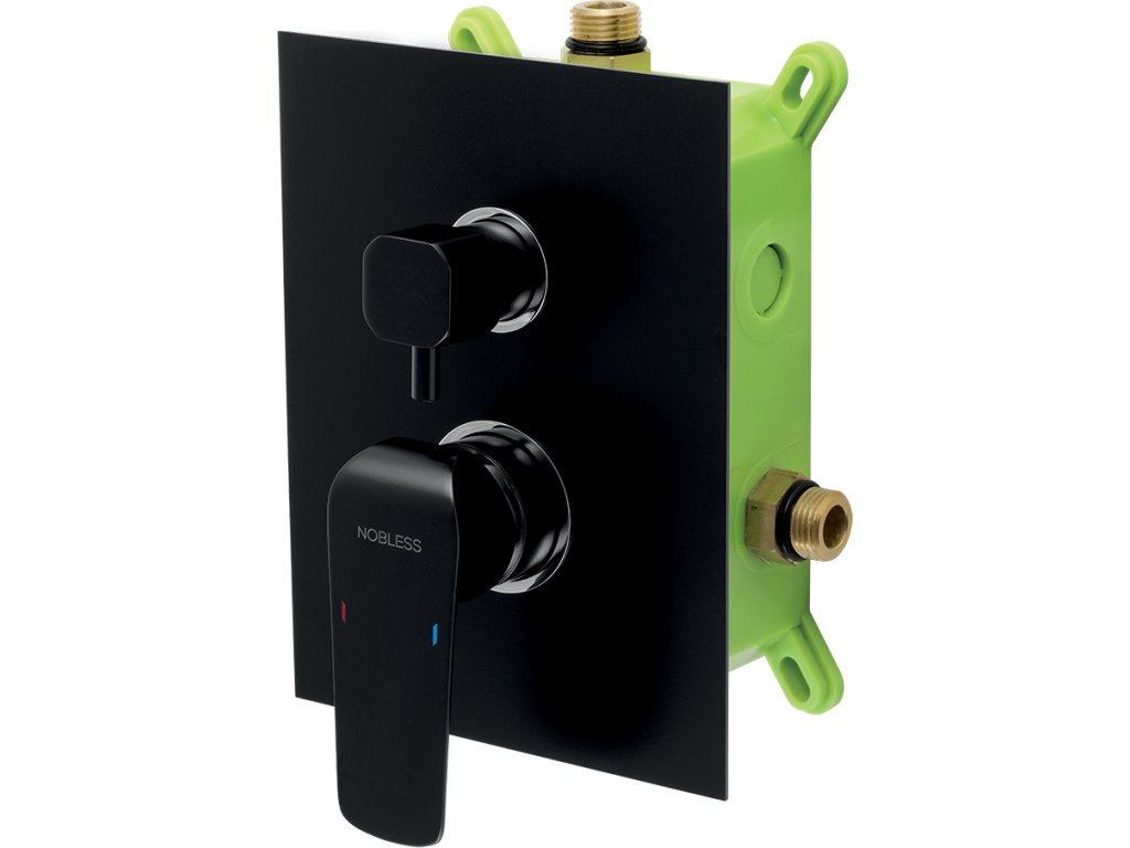 Kvalitní a odolná keramická kartuše 35 mm s prodlouženou zárukou 5 let. Prvotřídní provedení černá-mat. Vanová a sprchová podomítková baterie s boxem a keramickým přepínačem pro 2 vývody. Box je dodávaný komplet včetně krytu a ovládací páky.