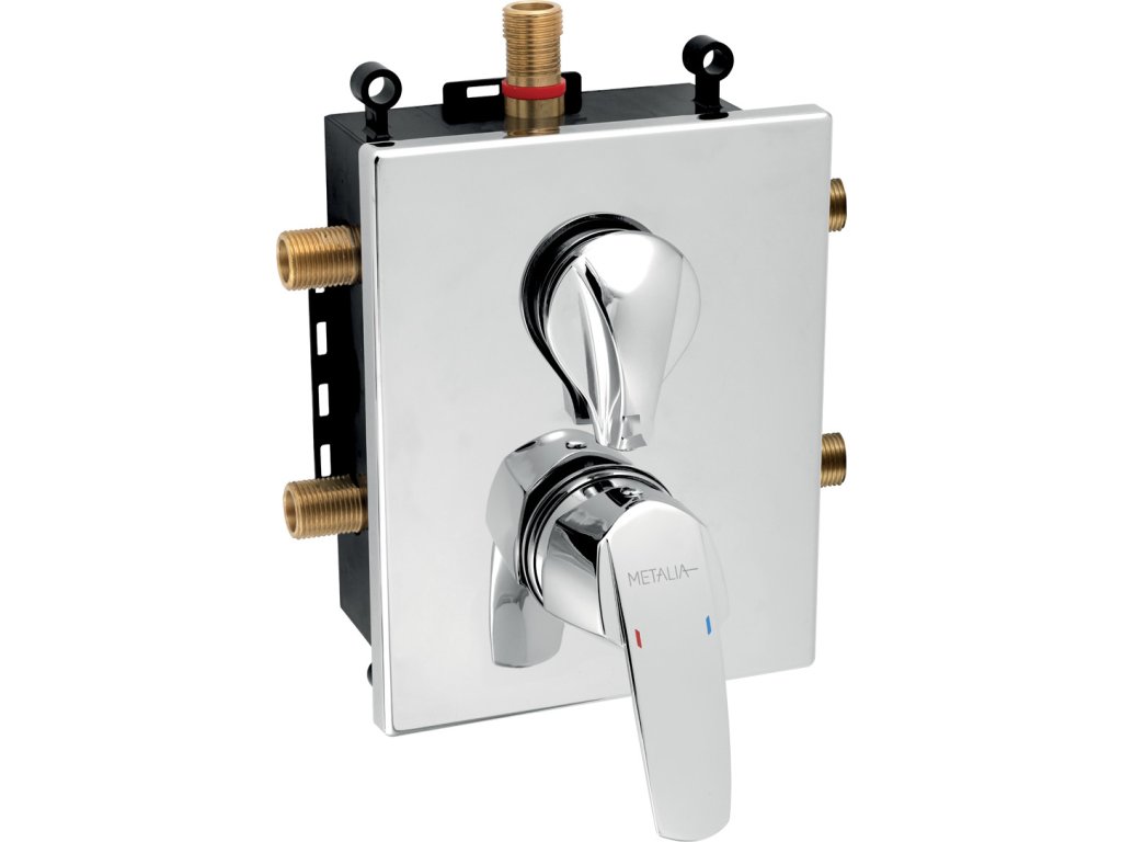 Kvalitní a odolná keramická kartuše KEROX 40 mm s prodlouženou zárukou 7 let. Prvotřídní chromové provedení. Podomítková baterie s boxem pro 3 vývody vody a s keramickým přepínačem. Box je dodávaný komplet včetně krytu a ovládací páky.