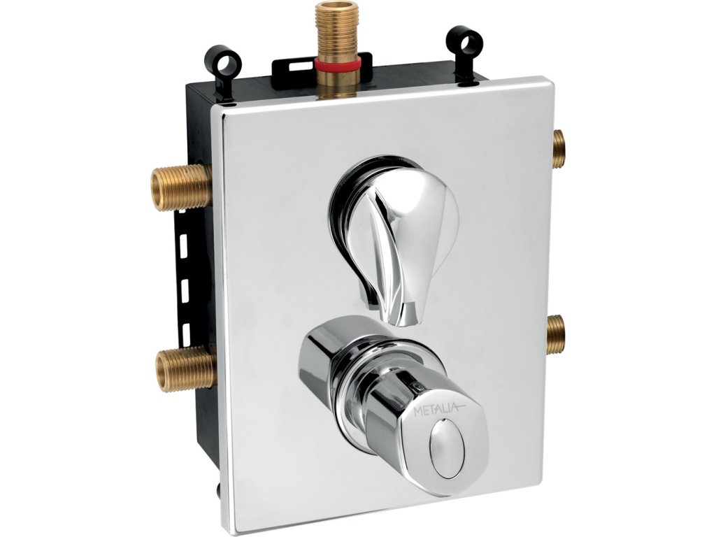 Kvalitní a odolná termostatická kartuše KEROX s prodlouženou zárukou 7 let. Prvotřídní chromové provedení. Podomítková termostatická baterie s boxem pro 3 vývody vody a s keramickým přepínačem. Box je dodávaný komplet včetně krytu a ovládací páky.