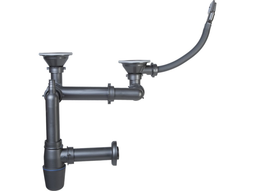 Sifon na dvojitý dřez, odpad dřezu 89mm přepad ze dřezu
