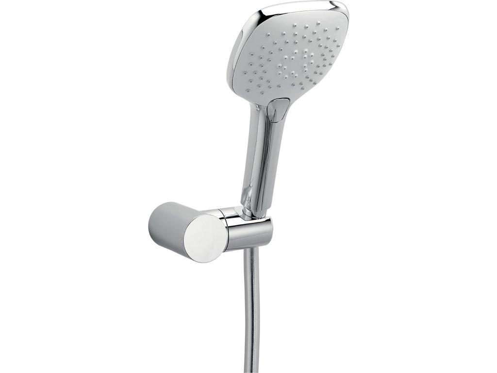 Sprchová souprava pro vanové baterie obsahuje 3-polohovou ruční sprchu, kloubový držák sprchy a plastovou flexibilní sprchovou hadici s anti-twist v délce 150 cm