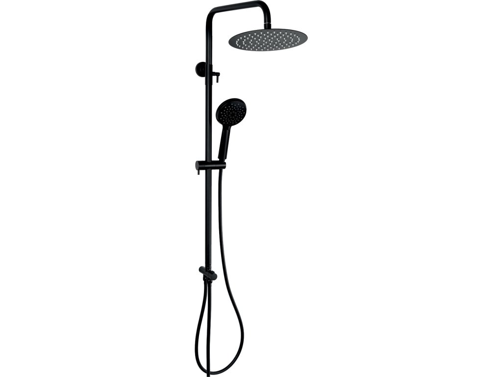 Prvotřídní provedení černá-mat. Set je vhodný pro připojení k vanové nebo sprchové baterii se spodním vývodem. Součástí balení je hlavová sprcha ve SLIM DESIGN s průměrem 250 mm, hadice 150 cm a 3-polohová ruční sprcha. Nastavitelná výška setu je 890 - 1300 mm. Součástí balení je připojovací hadička v délce 70 cm.
