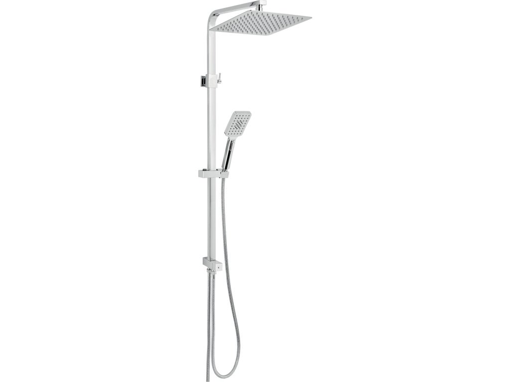 Prvotřídní chromové provedení. Set je vhodný pro připojení k vanové nebo sprchové baterii se spodním vývodem. Součástí balení je hlavová sprcha ve SLIM DESIGN s průměrem 250 x 250 mm, kovová hadice 150 cm a 1-polohová ruční sprcha. Nastavitelná výška setu je 830 - 1275 mm. Součástí balení je připojovací hadička v délce 70 cm.