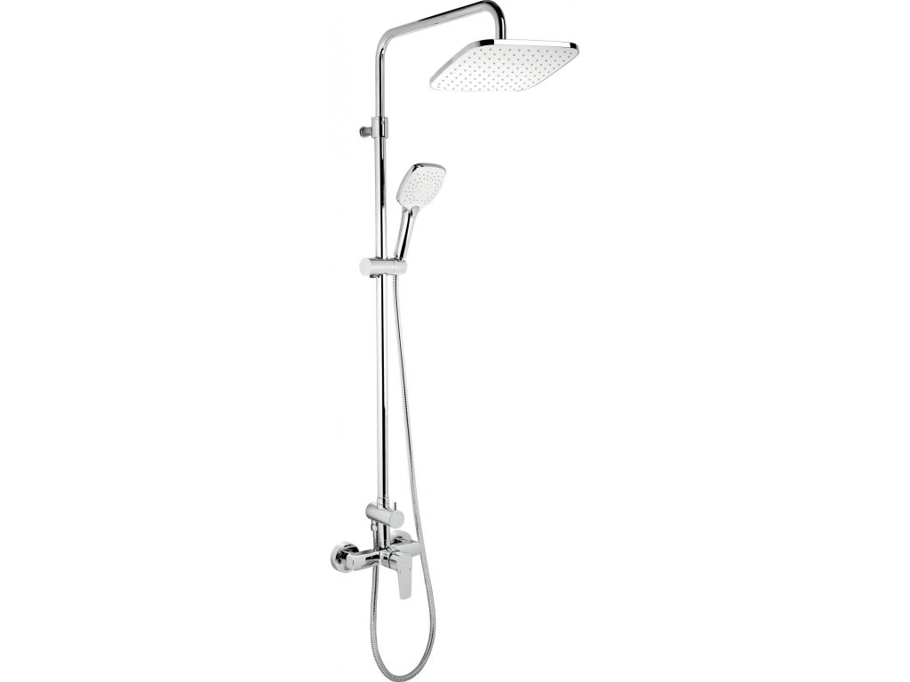 Set obsahuje nástěnnou sprchovou baterii s horním vývodem a roztečí 150 mm s kvalitní a odolnou keramickou kartuší KEROX 35 mm s prodlouženou zárukou 7 let. Prvotřídní chromové provedení. Součástí balení je kovová sprchová hadice 150 cm, hlavová sprcha 230 x 230 mm, 3-polohová ruční sprcha a posuvný jezdec s držákem ruční sprchy. Set je výškově nastavitelný 1035 - 1225 mm. Umožňuje nastavit i odchýlení vrchního úchytu od stěny v rozmezí 50 - 80 mm. Hlavová sprcha obsahuje šetřící regulátor průtoku vody na max 12 l/min a je vybavena EASY CLEAN tryskami pro snadné čištění.