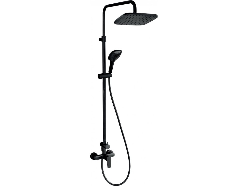 Set obsahuje nástěnnou sprchovou baterii s horním vývodem a roztečí 150 mm s kvalitní a odolnou keramickou kartuší KEROX 35 mm s prodlouženou zárukou 7 let. Prvotřídní provedení černá-mat. Součástí balení je kovová sprchová hadice 150 cm, hlavová sprcha 230 x 230 mm, 3-polohová ruční sprcha a posuvný jezdec s držákem ruční sprchy. Set je výškově nastavitelný 1035 - 1225 mm. Umožňuje nastavit i odchýlení vrchního úchytu od stěny v rozmezí 50 - 80 mm. Hlavová sprcha obsahuje šetřící regulátor průtoku vody na max 12 l/min a je vybavena EASY CLEAN tryskami pro snadné čištění.