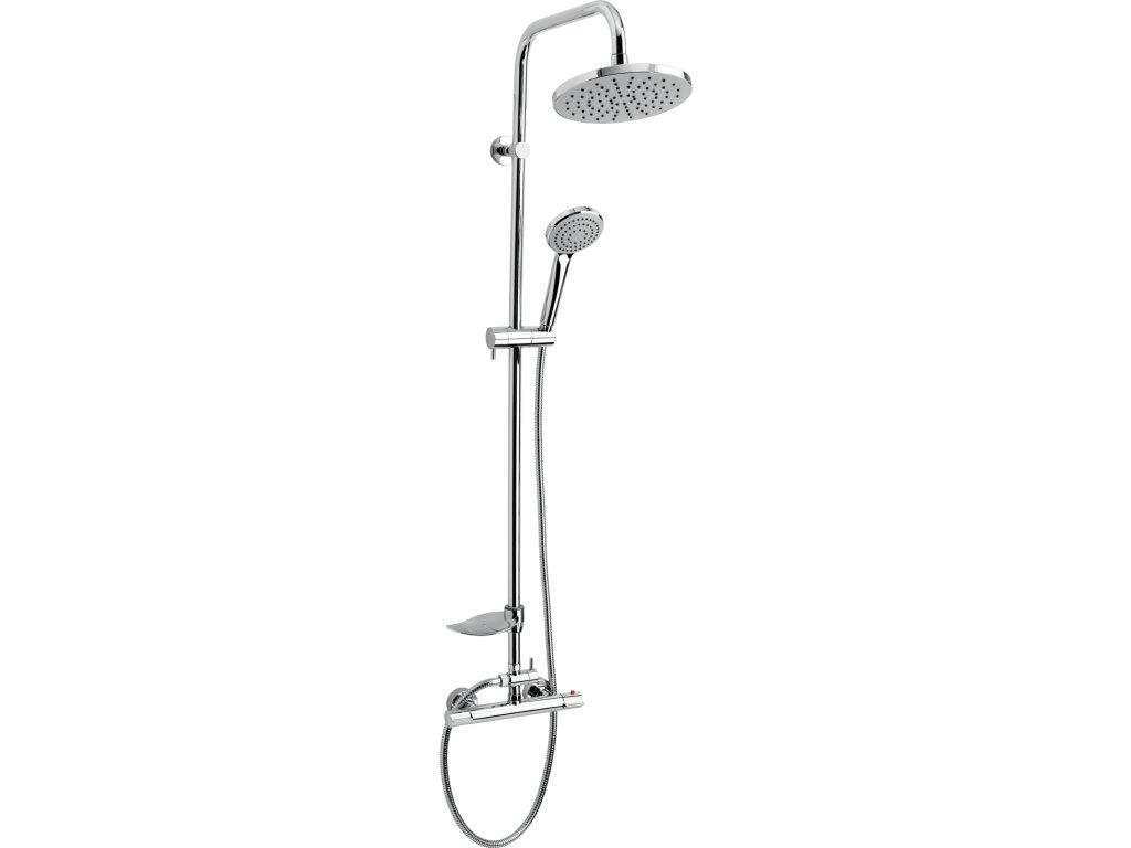 Prvotřídní chromové provedení. Set obsahuje termostatickou baterii s roztečí 150 mm. Součástí balení je hadice 150 cm, hlavová sprcha s průměrem 200 mm a 1-polohová ruční sprcha. Výška setu je 1020 mm. Umožňuje nastavit odchýlení horního úchytu od stěny v rozmezí 60 - 80 mm.