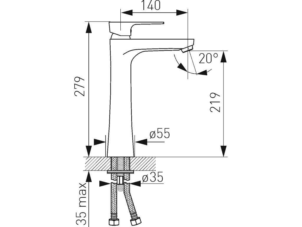Kvalitní a odolná keramická kartuše 35mm s prodlouženou zárukou 5 let. Prvotřídní chromové provedení. Umyvadlová baterie bez výpusti s výškou 279 mm a délkou výtokového ramínka až 160 mm. Součástí baterie jsou přívodní hadičky.