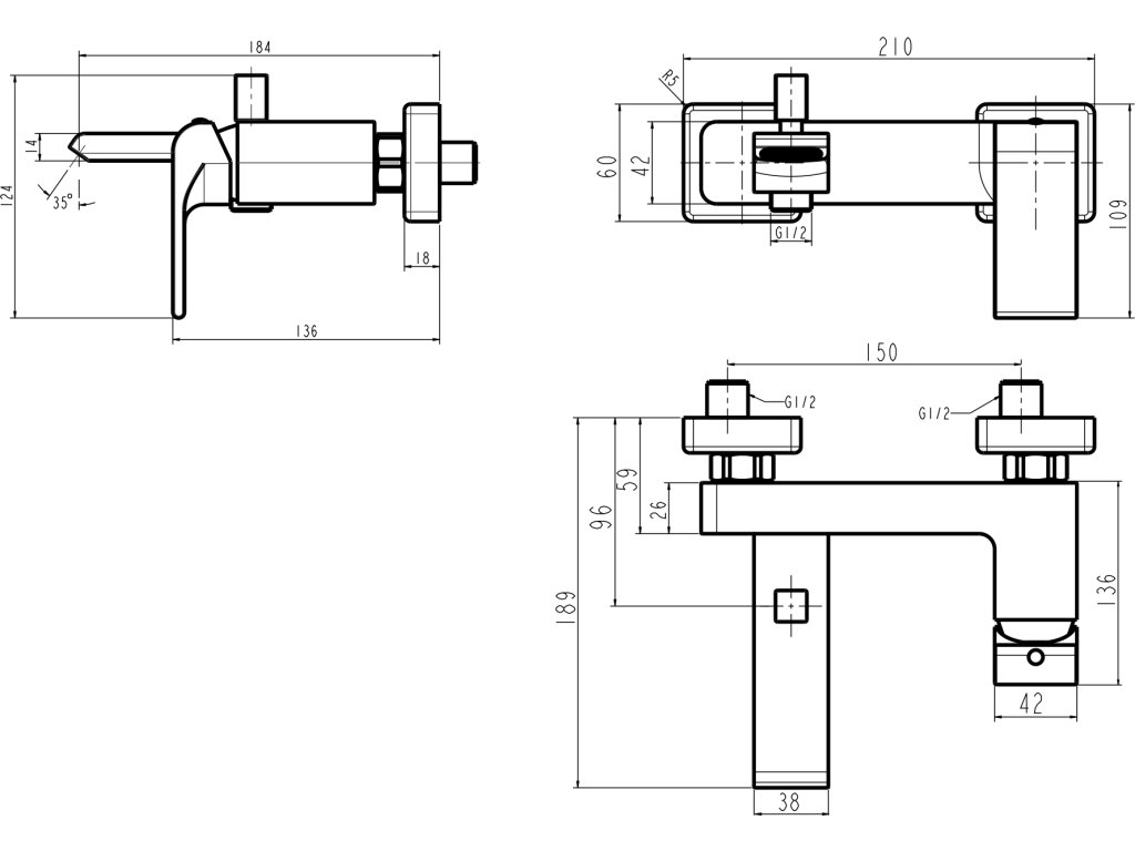Vanová baterie bez příslušenství 150 mm SHARP chrom