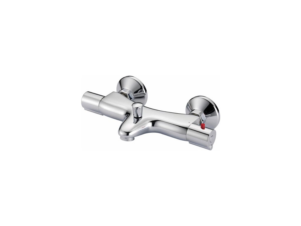 Vanová nástěnná termostatická baterie bez příslušenství. Rozteč baterie 150 mm.