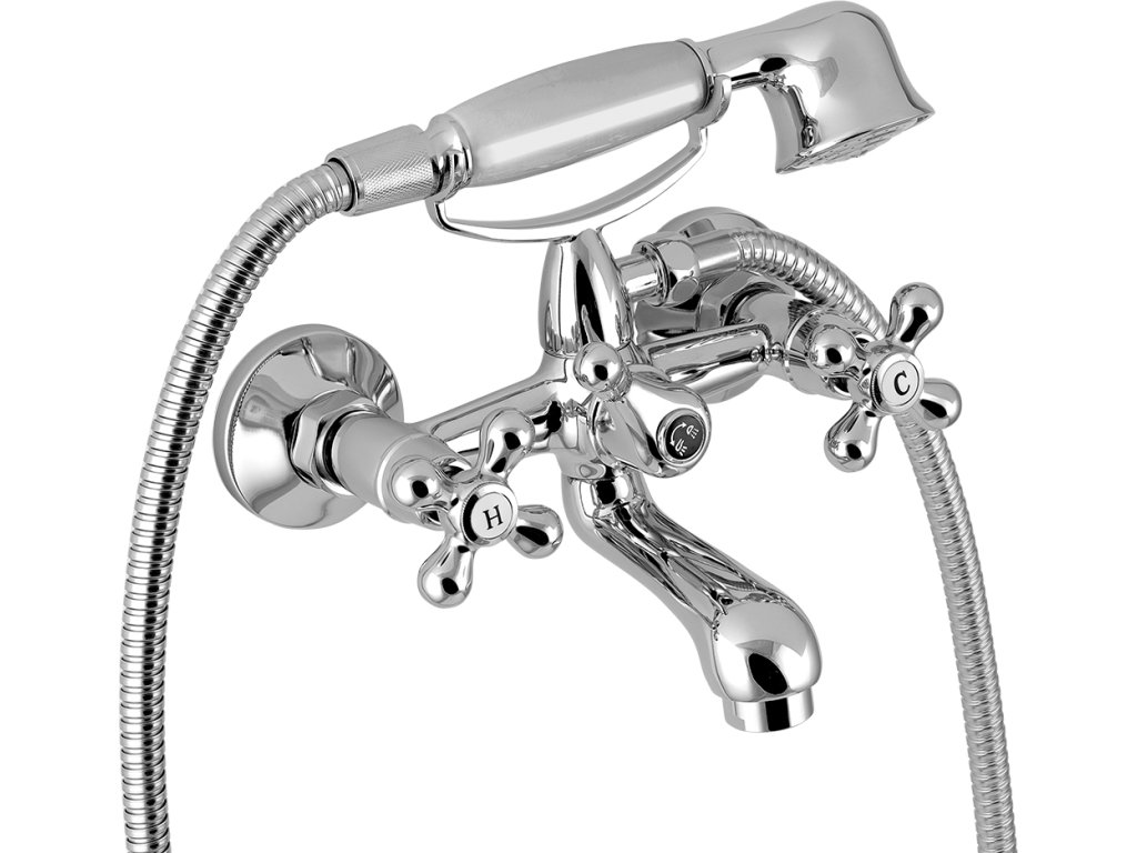 Kvalitní a odolné keramické ventily s prodlouženou zárukou 5 let. Prvotřídní chromové provedení. Vanová nástěnná baterie s roztečí 150 mm a pákovým přepínačem sprchy a kovová sprchová hadice délky 150 cm