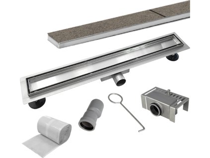 Odtokový sprchový žlab, 100x7 cm, nerez, vč. roštu TILE a nerezového vnitřku sifonu.