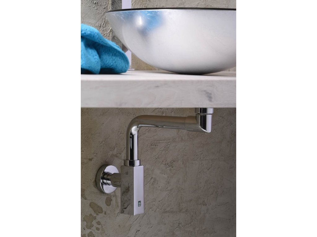 Jedná se o systém, kde trubka těsně pod umyvadlem odvede vodu ke zdi a teprve tam ji odvádí svisle dolů. Toto řešení je vhodné například do koupelnového nábytku, kdy sifon nebrání využití police/zásuvky, pro umyvadla s policí nebo k umyvadlům pro tělesně handicapované.