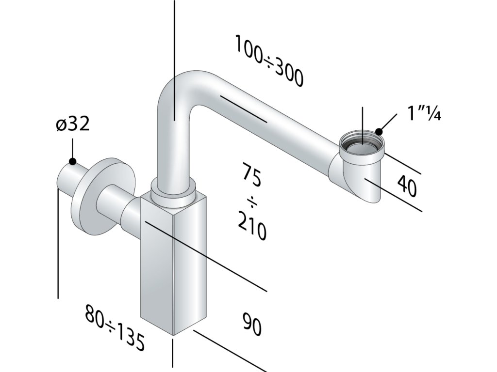 Omp Tea QUASAR umyvadlový sifon šetřící místo, 5/4" odpad 32mm, chrom 811.215.5.K