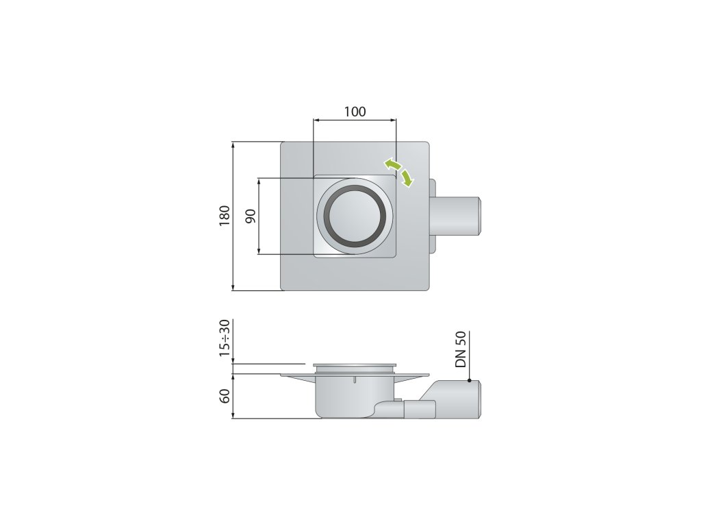 Omp Tea TIRANA podlahová vpust boční 100x100mm, DN50, chrom 2665.295.8
