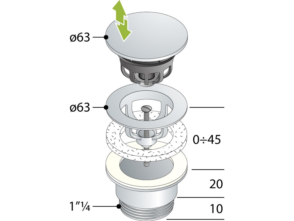 Omp Tea Umyvadlová výpust 5/4“, click-clack, velká zátka, 10-45mm, chrom 7532.310.5