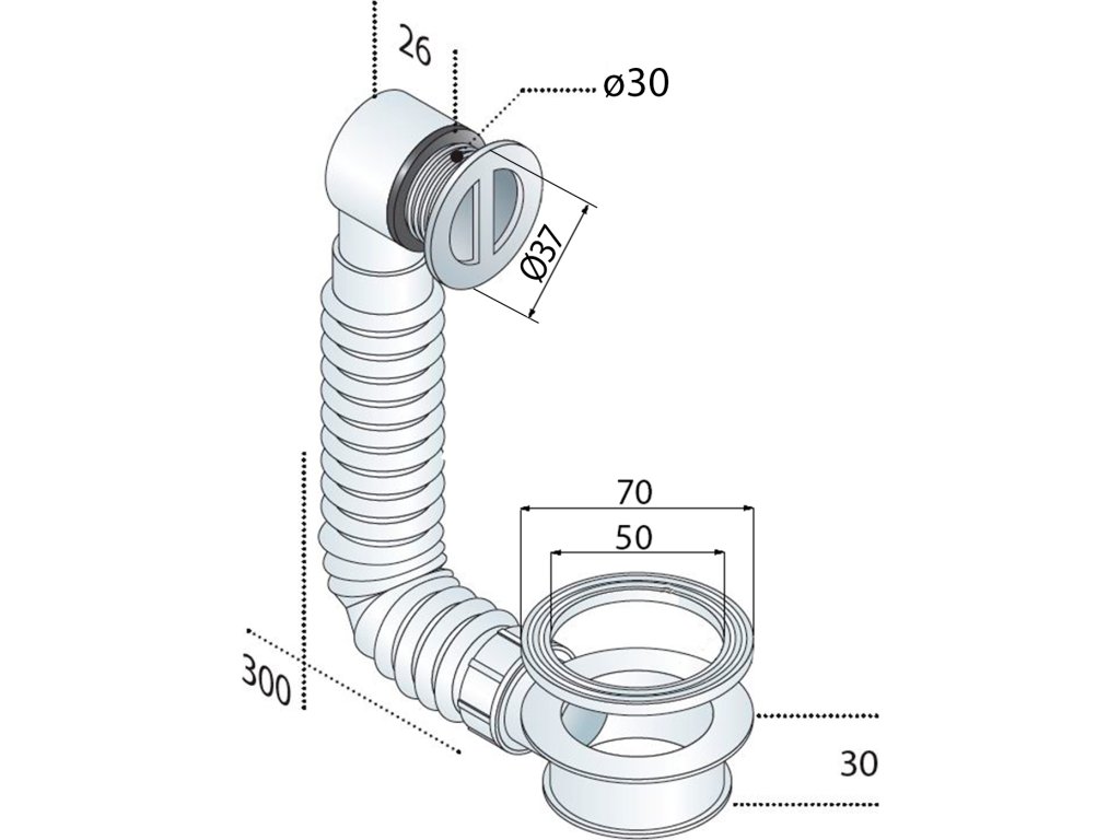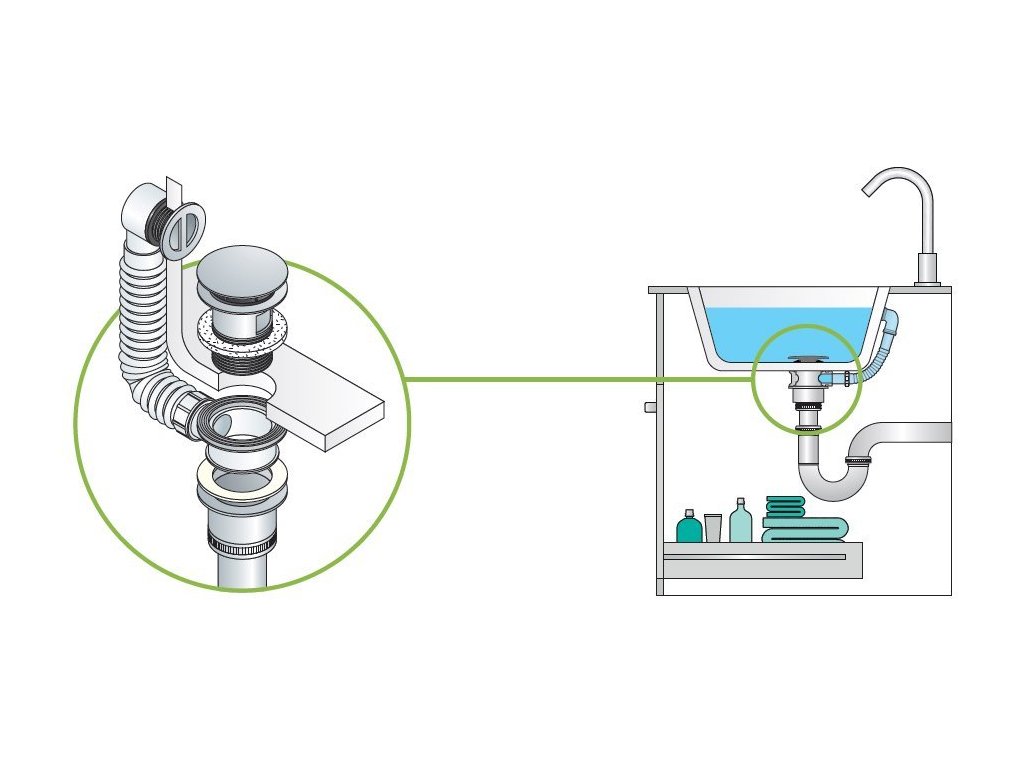 Umyvadlový přepad s odpadním mezikusem pro umyvadla z litého mramoru