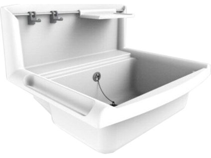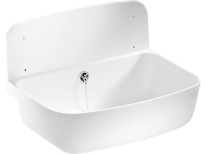 Umyvadlo (výlevka) s ochrannou zadní stěnou proti ostřiku, určené pro sklep, zahradu, garáž, dílnu