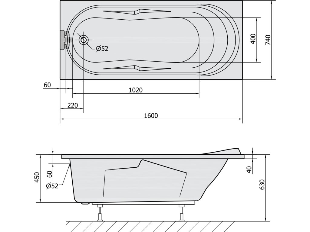 Polysan ADRIANA obdélníková vana 160x74x45cm, bílá 43111