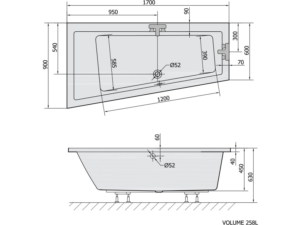 Polysan ANDRA L asymetrická vana 170x90x45cm, bílá 81111
