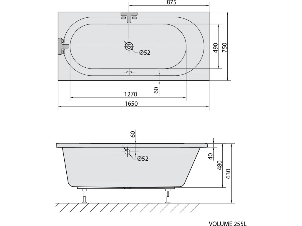 Polysan ASTRA B obdélníková vana 165x75x48cm, bílá 32611