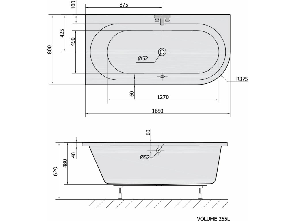 Polysan ASTRA L asymetrická vana 165x80x48cm, bílá 33611