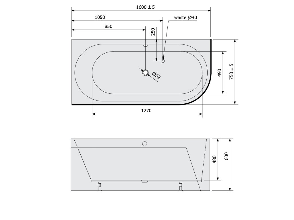 Polysan ASTRA L MONOLITH asymetrická vana 160x75x60cm, bílá 33611M