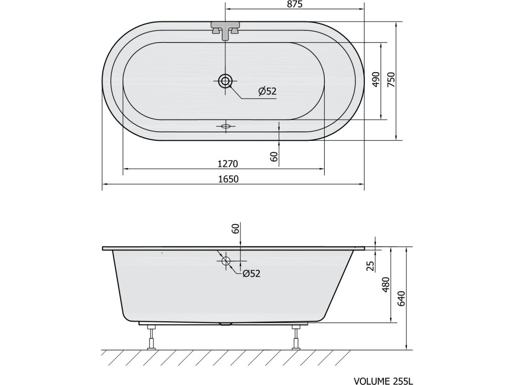 Polysan ASTRA O oválná vana 165x75x48cm, bílá 35611