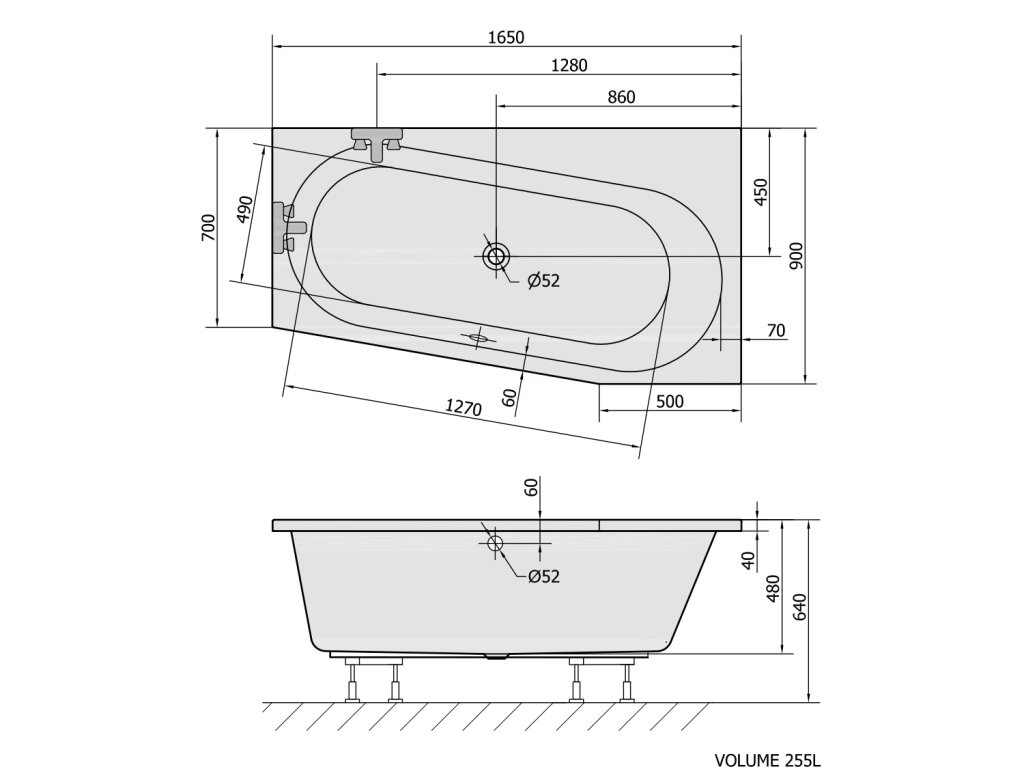 Polysan ASTRA WR asymetrická vana 165x90x48cm, bílá 31611
